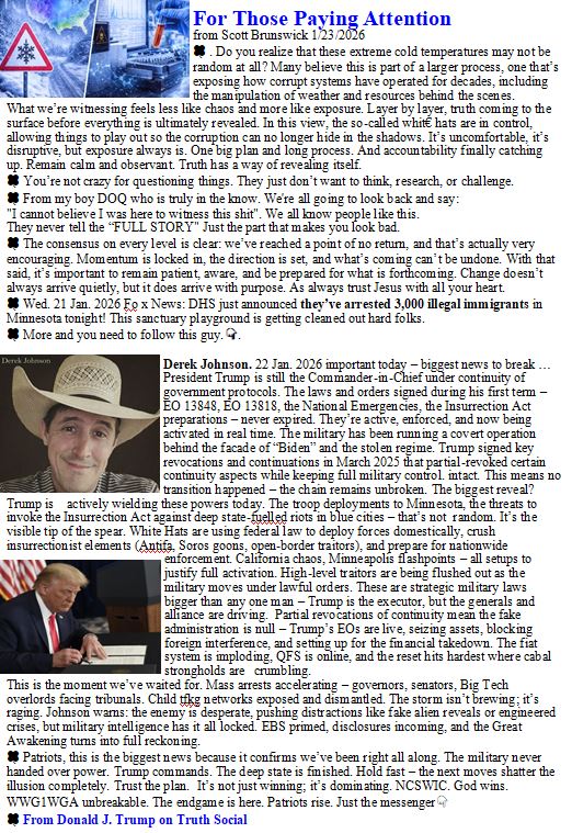 Disclaimer – The following is not intended as legal, financial, or medical advice; it is sent for Education and Discussion Purposes Only. All items are the opinion of the authors. Thank you all for your support to maintain the → operation of this site and welcome to many new subscribers daily. Please assist enable this site to remain active
